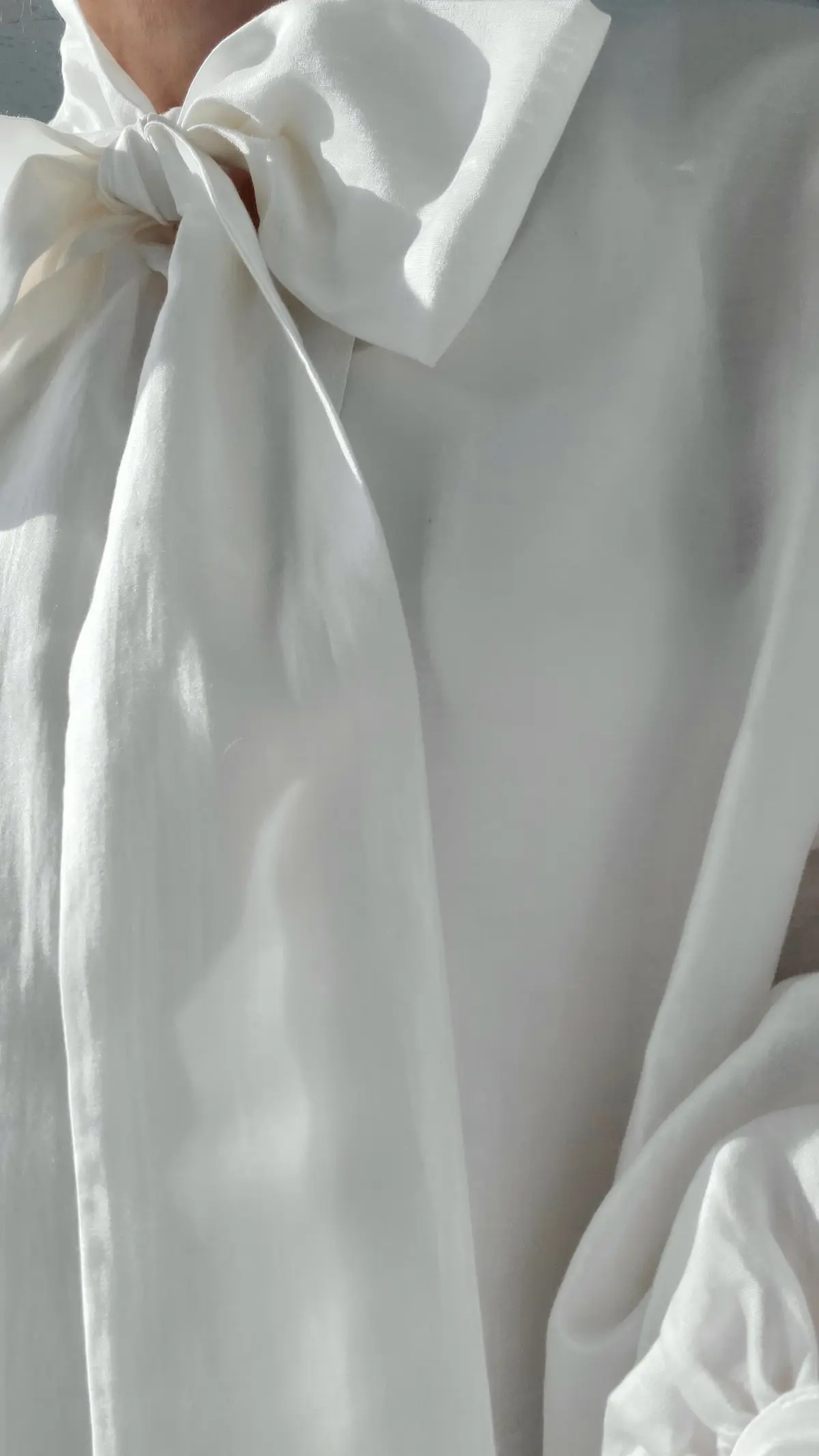 透け感にビッグリボンというトレンド要素が詰まっていながら、シルク風の生地のおかげで大人でも取り入れやすい、落ち着きのある華やかさが魅力です。