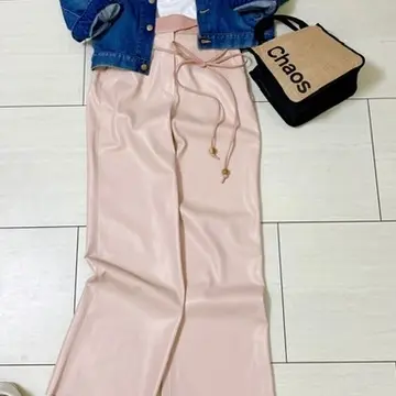 このピンクのNANUSHKAのパンツはフェイクレザーなんです!この艶やかさに一目惚れしちゃいました!(笑)