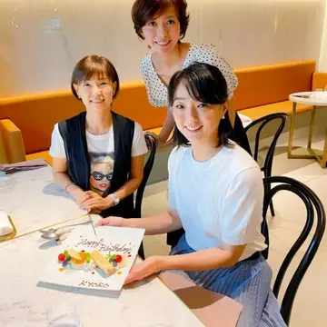 写真右は競泳のゴールドメダリストで大学の後輩、岩崎恭子ちゃん。お隣りは元プロ野球選手、駒田徳広さんの奥さま、美佳子さんです。