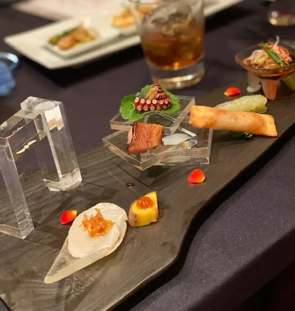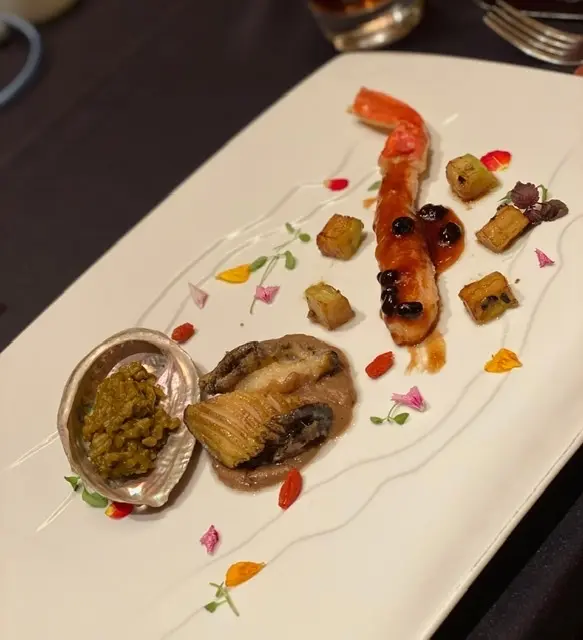 内容は鮑にフカヒレ、北京ダックに海鮮やお肉と、贅沢な食材をふんだんに味わえるコースをいただきました。