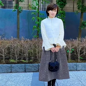秋冬バージョンの黒かごバッグは大人コーデに大活躍です。