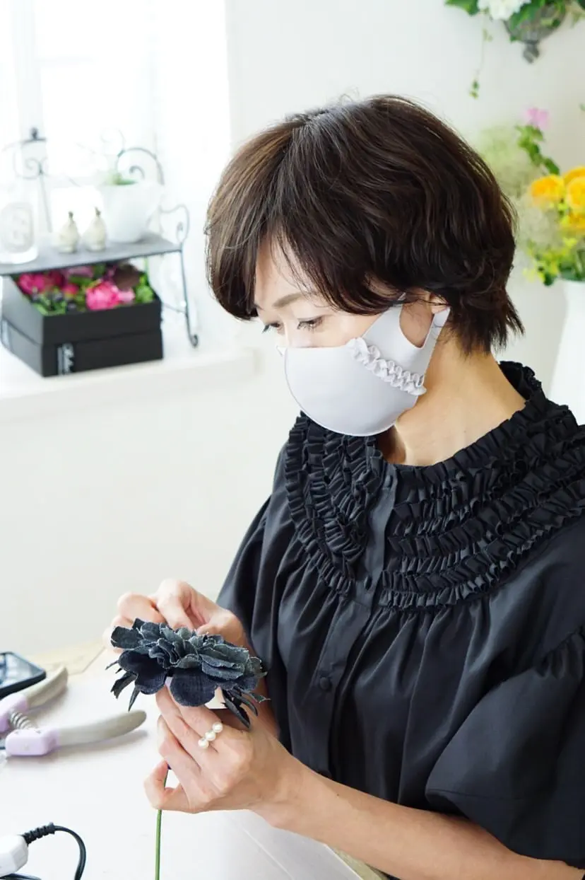 私はブラックのデニムフラワーを基本にリボンもチュールも黒で統一。
