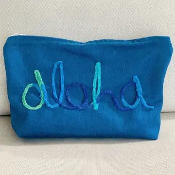 そしてクラッチバッグとして使いたいと思い、《aloha 》と書かれたデニム素材のビッグポーチと娘達がチョイスしたとってもキュートなポーチたち。