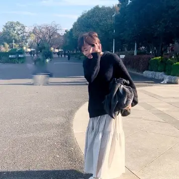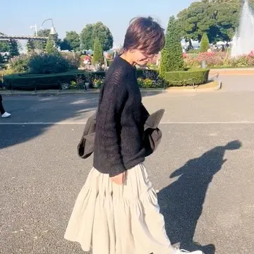 このスニーカーに負けないように、あえてお洋服もボリューム感あるゆるっとコーデにしてみました。