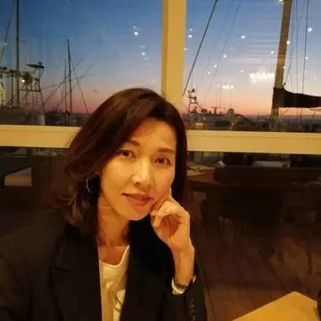 紺ジャケットと白ボトムの定番コーデで