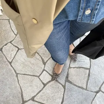 足元はレオパード柄パンプスにして、