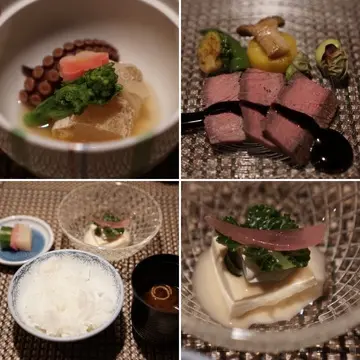 お夕食の創作懐石は、ひとつひとつ丁寧に作られていることが分かり、見た目も器も、もちろんお味も大満足でした。サーブしてくださる方々も常ににこやかで気持ちの良いサービスでした。
