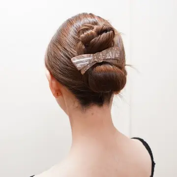 レッスンする時はシニヨンにしたり、バレッタで留めるだけの時もあります。