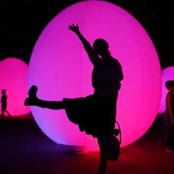 卵形体に写るシルエットが楽しくて色んなポーズとってみました!!