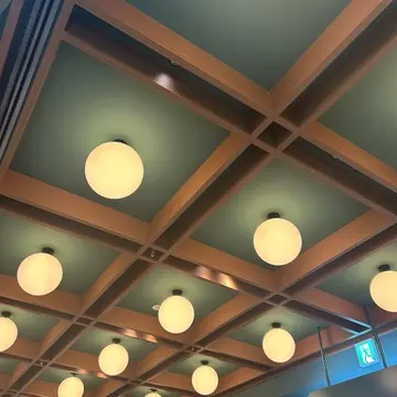 スモーキーなグリーンの壁が素敵で照明もかわいい店内でした✨