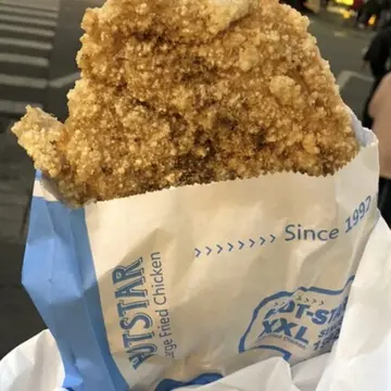 顔の大きさくらいある鳥の唐揚げ(ダージーパイ)と胡椒餅❗️最高でした🩷