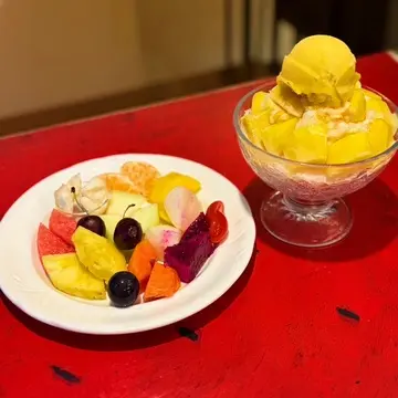 マンゴーかき氷とフルーツ盛り合わせを娘とシェアしました✨