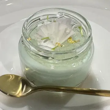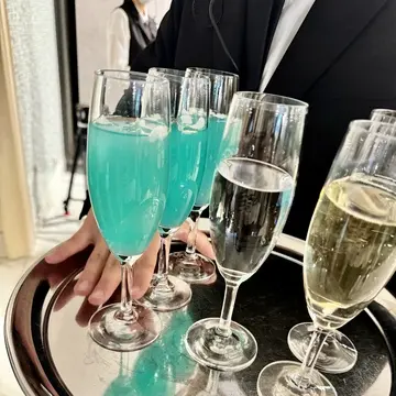 シャンパンを頂きたかったのですが、白い花びらが浮かんでいる綺麗なエメラルドグリーンのドリンクを頂きました。(安心してください、アルコール入っていませんよ笑!)