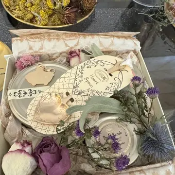 そして、素敵なギフトもいただきました。自分の好きなドライフラワーをセレクトしてボックスへ。名前入りのSABONチャームも。このドライフラワーは、結婚式で使われて破棄されるお花をドライフラワーにリユースしたものなんだそうです。エレガントなアートに昇華してますよね。また、SABONの容器はどれもオシャレなのでお花を生けたり、ドライフラワーを入れて香りをプラスすればルームフレグランスにも。思う存分、 SABONを楽しめます。