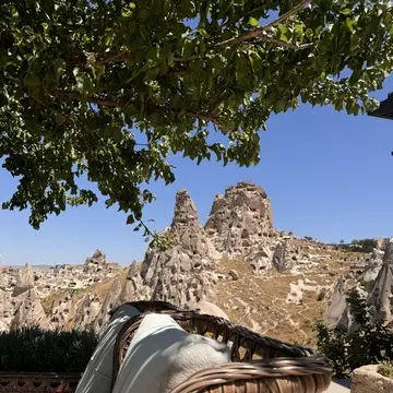 こちらは、ウチヒサル城。”尖った砦”と呼ばれる2つの岩山は、かつての砦。ここを中心に、城下町のように家々が軒を連ねています。岩山に登ることも可能ですが、私たちは😏...