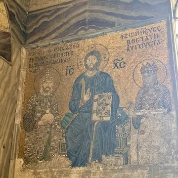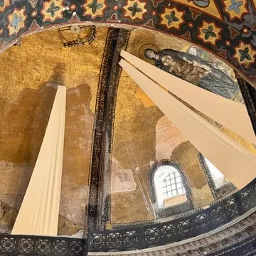 次に、宗教上の中心として人々を見守り続けてきたアヤソフィア。キリスト教とイスラム教が同居しています。モスクに改められたことで漆喰に覆われてしまった壁のモザイク画やフレスコ画は、1934年にアメリカの調査団によって発見され、一般に公開されるようになったそうです。