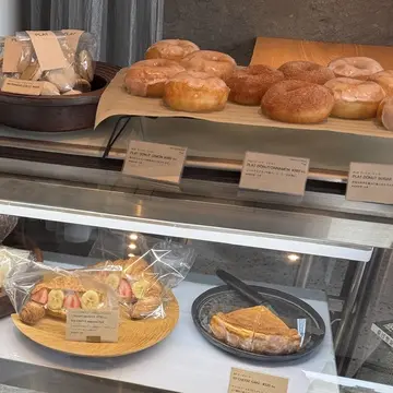 そして、その後に立ち寄ったのが香の近くにあるPLAT(プラット)。パン屋さんなんですが、建築設計事務所でもあるお店なんです。なので、お店の奥には事務所がありますが、手前のスペースはクロワッサンを中心に、バケットやサンドイッチ、ドーナツがあるカフェ。ワンコは抱っこすれば店内もOKですが、うちの息子を抱っこしながらゆったりは出来ないのでこの日はテイクアウトしました。