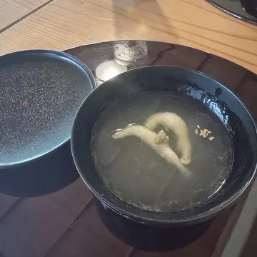 お料理2品とからすみ蕎麦のショートコースを頂きました。4月は、たいと蕨 木の芽塩、しらうおとうすい豆のソプ、からすみ蕎麦、デザートでした。