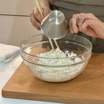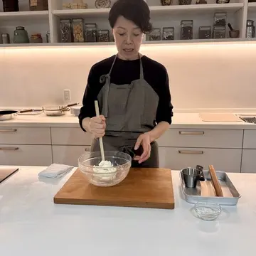まずは生地作り。先生の手際の良さに見惚れている間に完成w。