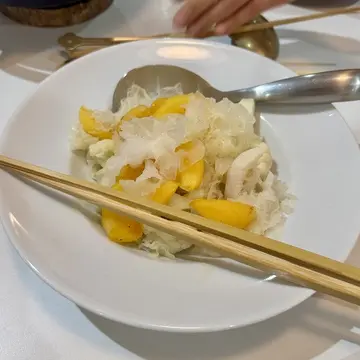 カリフラワーと白キクラゲ、蓮根、柿のあえもの