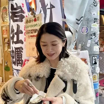 先ずは年末年始の食材を!ということで、築地へ買い出しに。そんな日のコーディネートは楽ちんスタイルにボリュームのあるEMMETIのムートンコートで。このコート、サラッと羽織るだけでラグジュアリーな装いに変身させてくれるところが気に入って愛用しています。ムートンの柔らかさにハードな革のアクセントを効かせたデザインもカッコいいですよね。