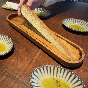 細長いフォカッチャ オリーブオイルと バルサミコ酢でいただきます