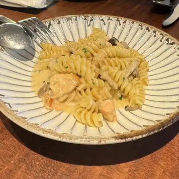 本日のパスタは 鮭のクリームパスタで 間違いのない美味しさです