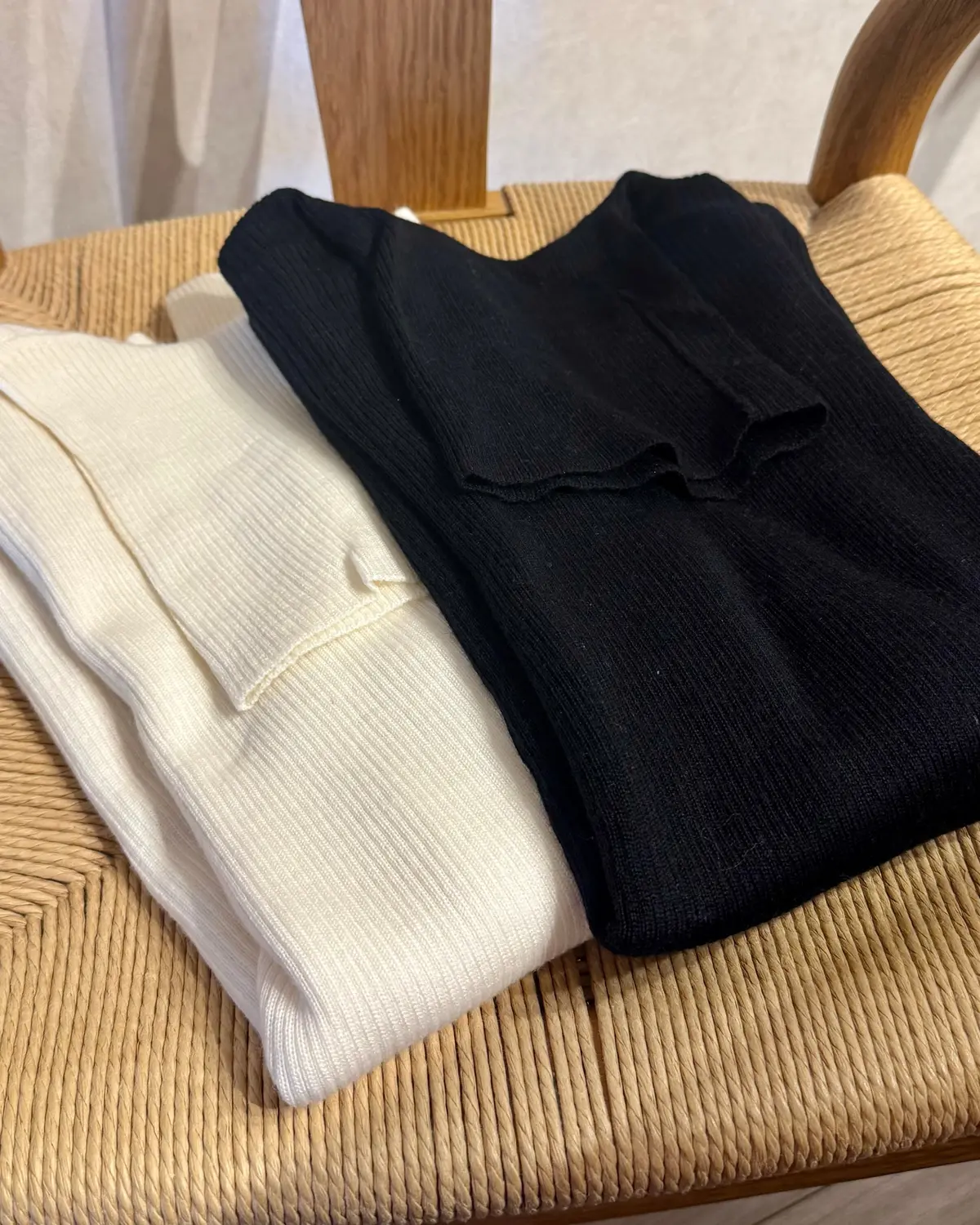 黒と白、同じアイテムでも色が変わるだけで、装いの表情はこんなにも変わります。