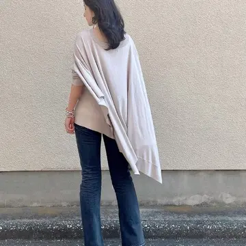 このニットは歩くたびに軽やかな動きがでるデザインで、デニムとの組み合わせを新鮮に見せてくれるので、とっても気に入ってます♡