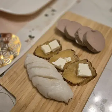 前菜3種 いぶりがっこチーズ、レバーペースト、笹かま