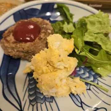 卵サラダにハンバーグ