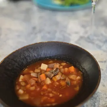 季節のミネストローネにはゴボウがはいっていて良い食感