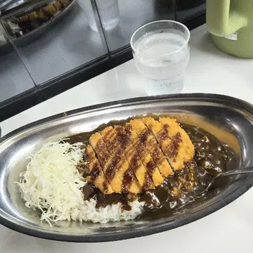 濃厚でとろみのあるルーにサクサクのカツとキャベツが添えられていて、