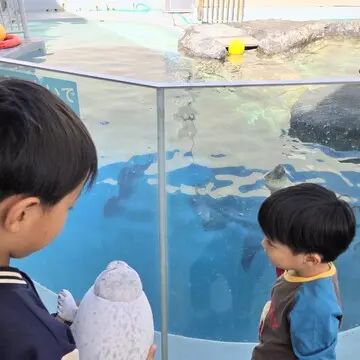 本物のアザラシたちがぐんぐん近づいてきて、興味津々。