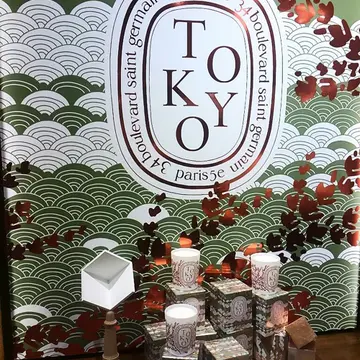 和をイメージしたディスプレイ店内でバカラのグラスでシャンパンを頂きました。