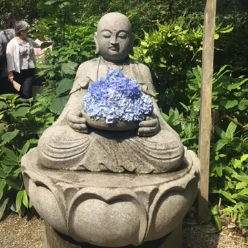 庭園の中は心温まる「花想い地蔵」や「方丈の窓」にうつる後庭園を眺められます。