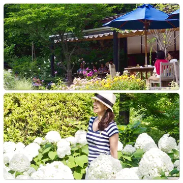 浄妙寺 石窯ガーデンテラス前に白い紫陽花アナベルが見事!