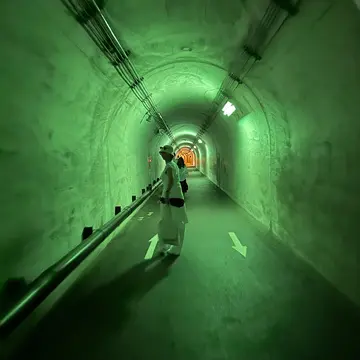 全長750mのトンネルを進んで行くと、