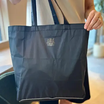 持っているトートバッグはeclat10月号特別付録、