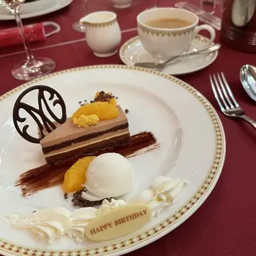 私の誕生日当日に行ったので、デザートにはバースデーのプレートが💖(こちらはキャストの方から頂けるバースデーのステッカーを貼っていたら、サプライズでつけてくださいました。こういうさりげないお心遣いが嬉しいです🥹)