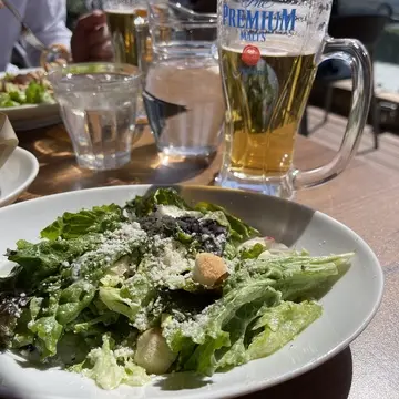 私はだいたいいつもシーザーサラダとトマトベースのパスタを選びます。