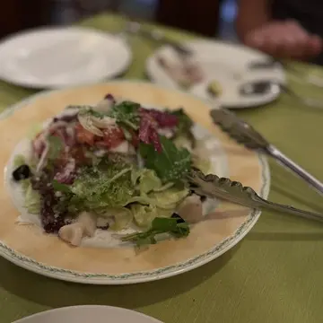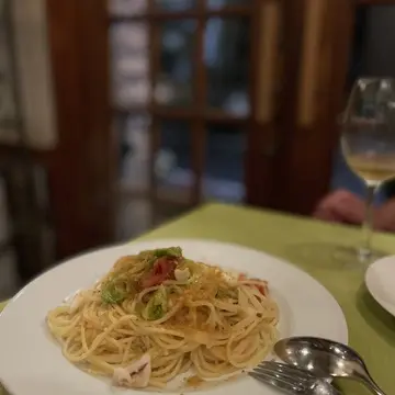 パテ・ド・カンパーニュ、新鮮なお魚のカルパッチョ、ホタテとタコのサラダ、カラスミのパスタ、マルゲリータを注文。