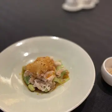 豚肉と枝豆の温かい前菜。大根おろしが効いていてさっぱり