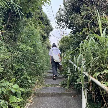 江ノ電の線路を渡り、長い階段を上がっていくとたどり着きます。