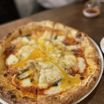 石窯から焼きあがったアツアツピザも絶品。マルゲリータとビスマルクを注文