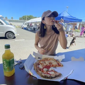 外で食べるアツアツモチモチピザは格別😋