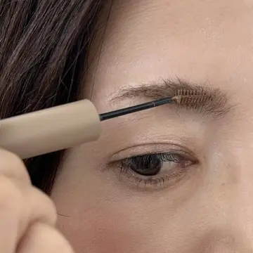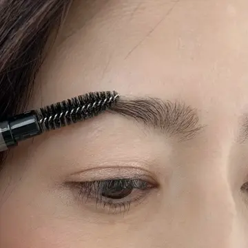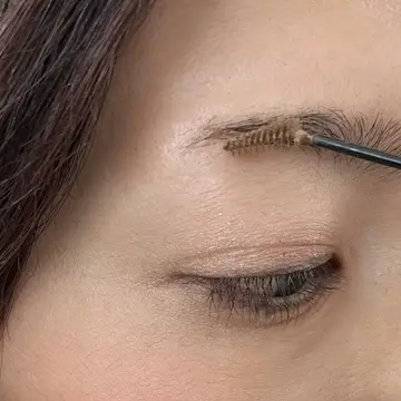 ②アイブロウマスカラで、眉じりから眉頭へ毛流れに逆らうようにして裏側につけます