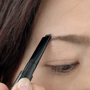 ⑤ペンシルアイブロウで描き足したい部分に軽くペンシルを押し当て、ポンポンと毛に押し付けるように付けます。軽〜くあてるだけで色が付きます。