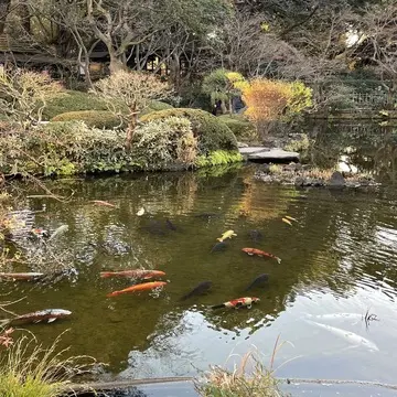 池には錦鯉が泳ぎ、都会の真ん中とは思えない見事な庭園です