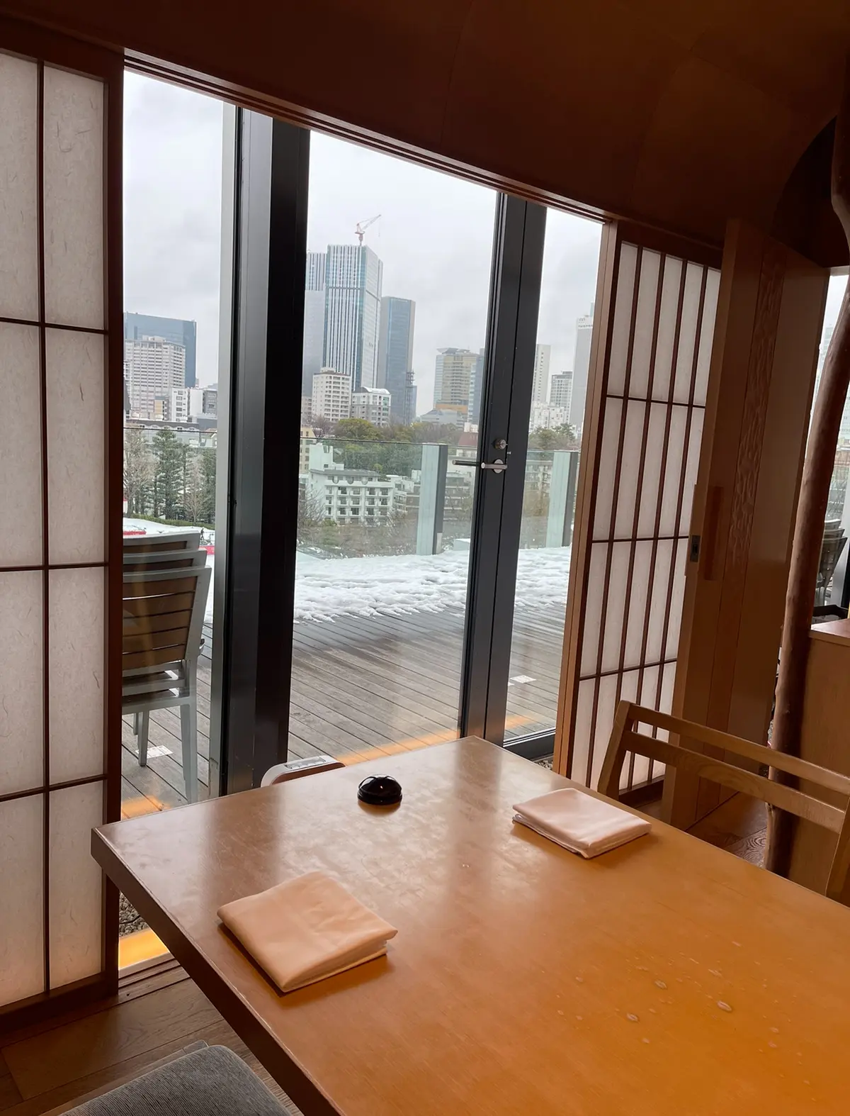 続いてネイビーニットとチャコールグレーのスカートに合わせて東京ミッドタウンで華組ランチ会へ♡
